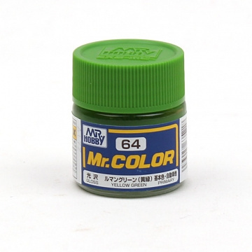 C064 Краска эмаль Mr.Color Желто-зеленый Yellow Green глянец ,10мл