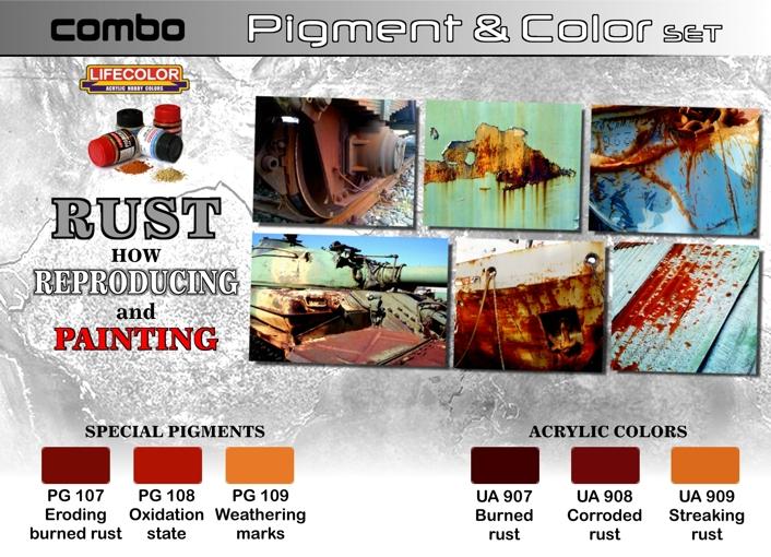 LIFECOLOR SPG03 Набор акриловых красок + пигменты РЖАВЧИНА ( 3+3 шт по 22 мл)
