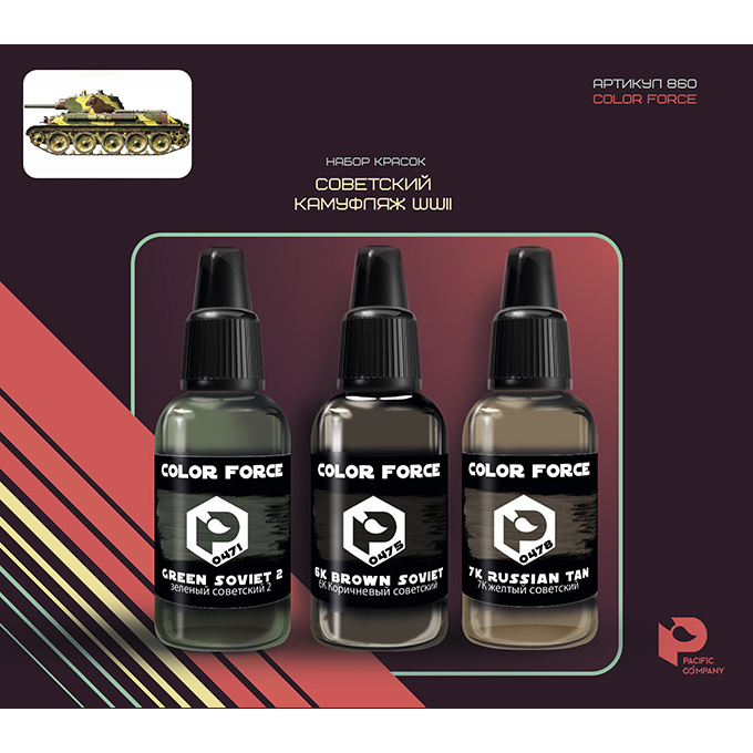 860 Набор красок AERO Советский камуфляж WWII (0471, 0475, 0478), 3 шт.