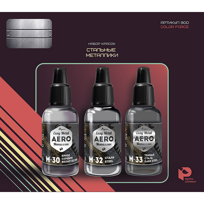 900 Набор красок AERO Стальные металлики (М30, М32, М33), 3 шт.