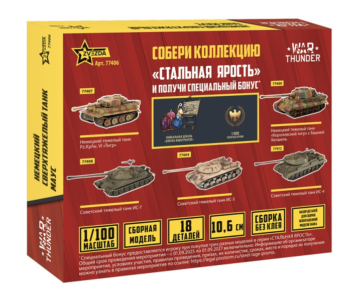 77406 Сборная модель Немецкий сверхтяжелый танк «Маус», 1/100