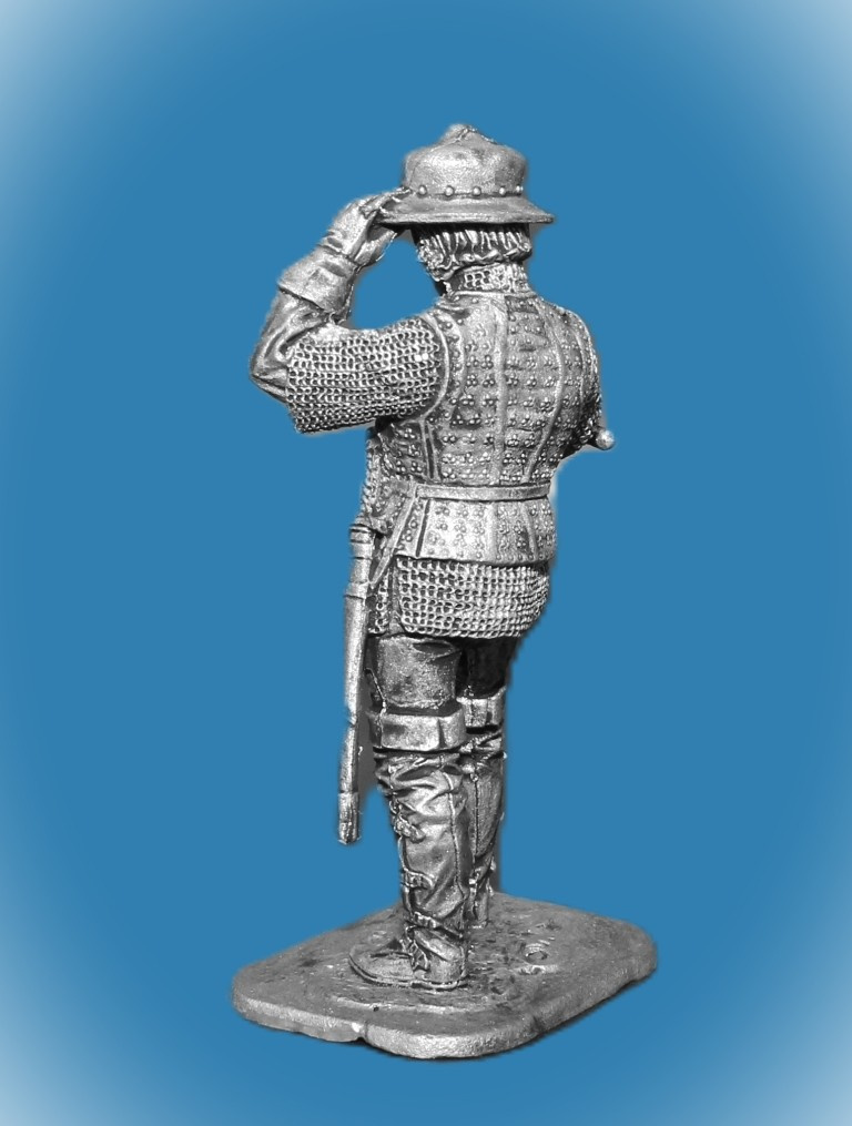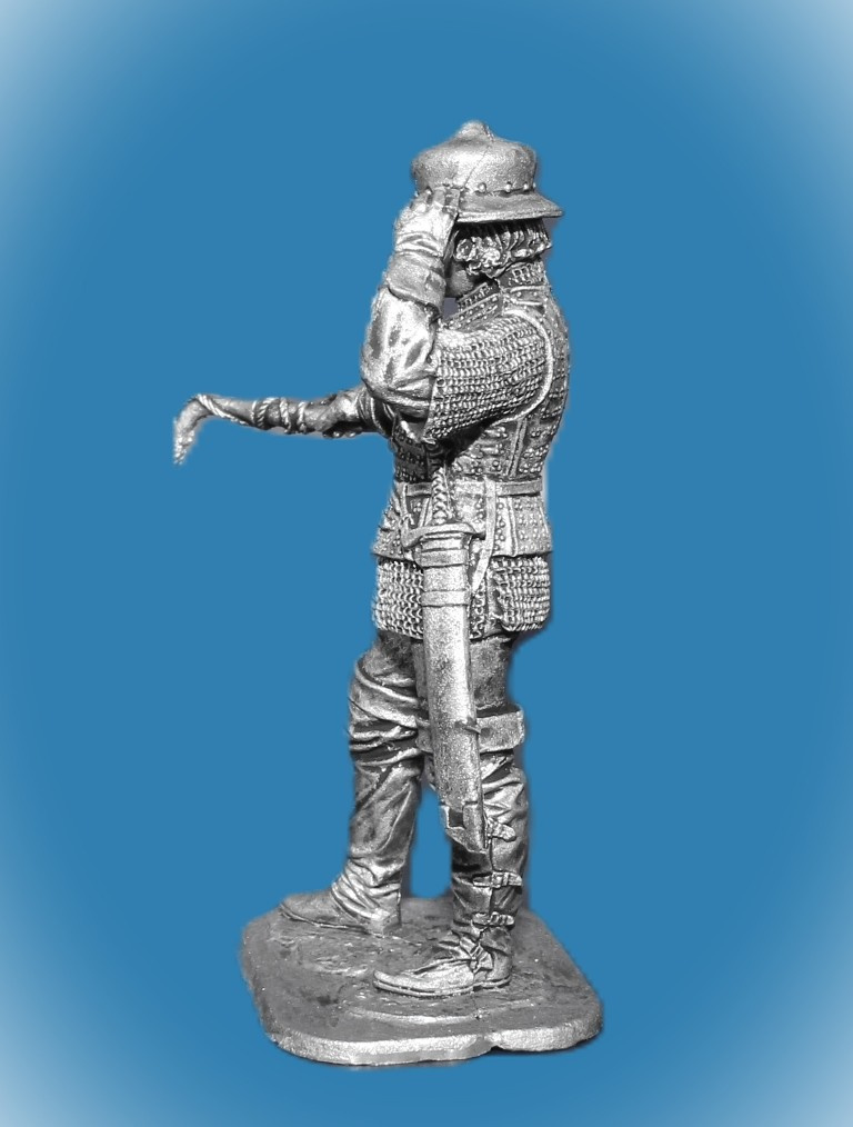 Коллекционная оловянная миниатюра в масштабе 1/32 (54 мм до уровня глаз). Эта детализированная фигурка отлита из сплава на основе олова и создана для ценителей истории, коллекционеров и любителей военно-исторической миниатюры. Каждая мастер-модель создается вручную, элементы одежды, оружие и прочие аксессуары проработаны до мелочей. Каждая складка ткани, каждый элемент вооружения выполнены с высокой точностью, что делает фигурку выразительной. Она станет достойным дополнением любой коллекции солдатиков и основой для художественной росписи.
