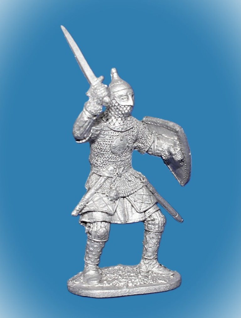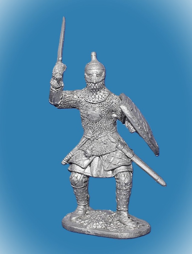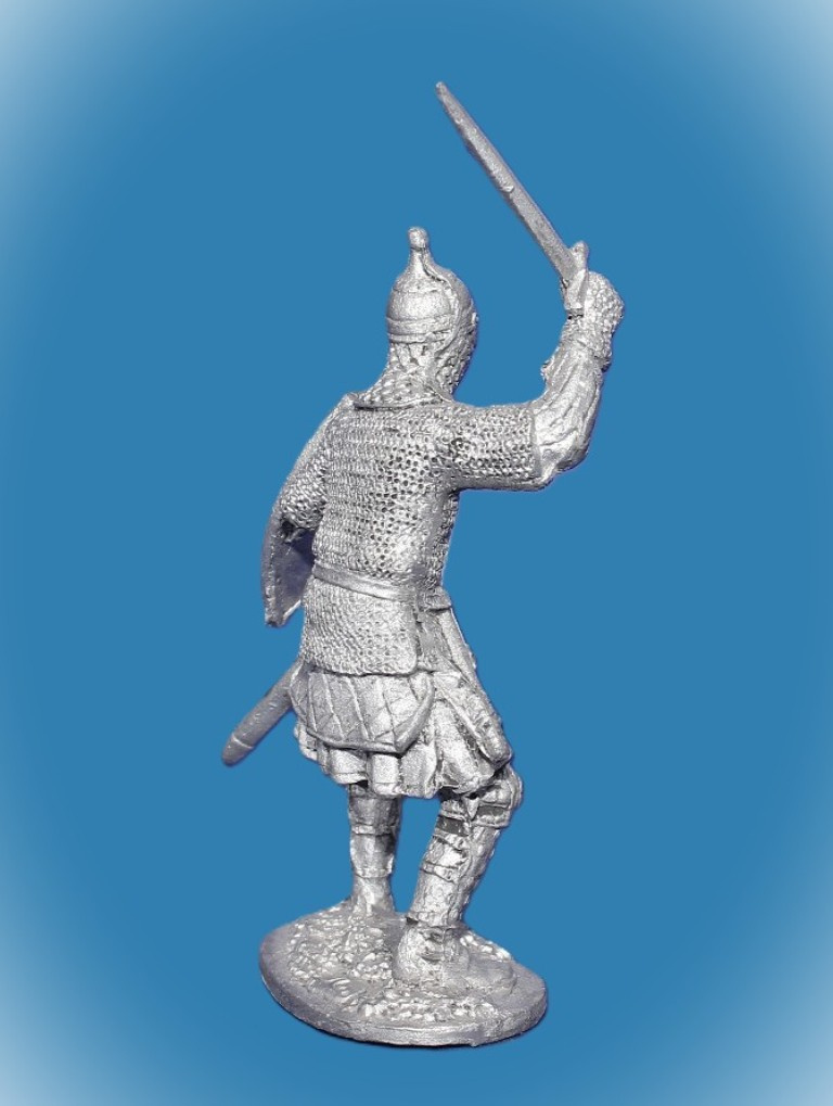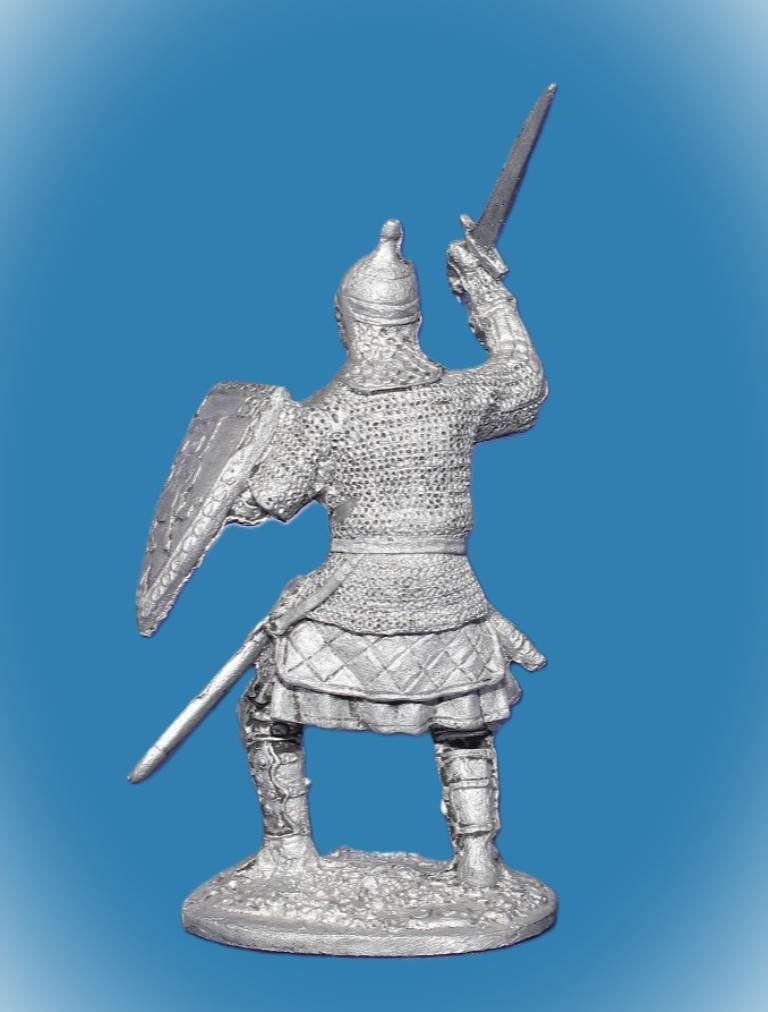 021. Оловянный солдатик Русский ратник 13-14в, 54мм