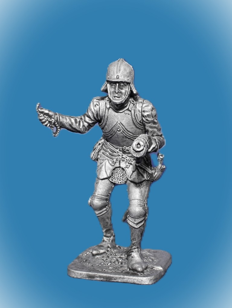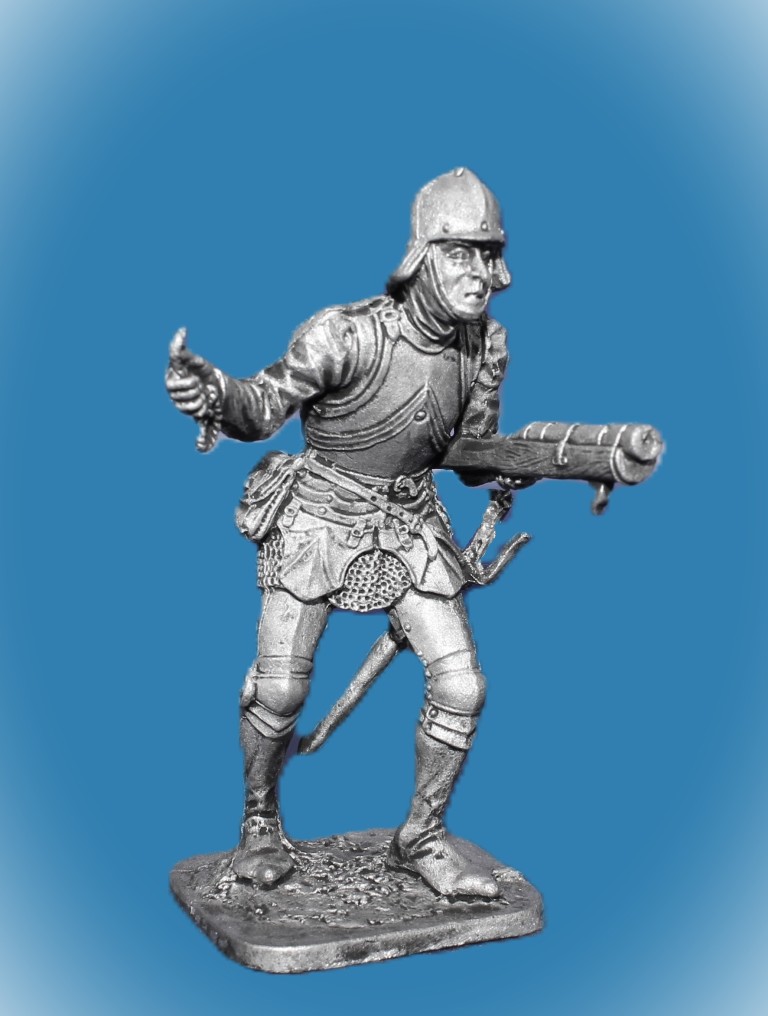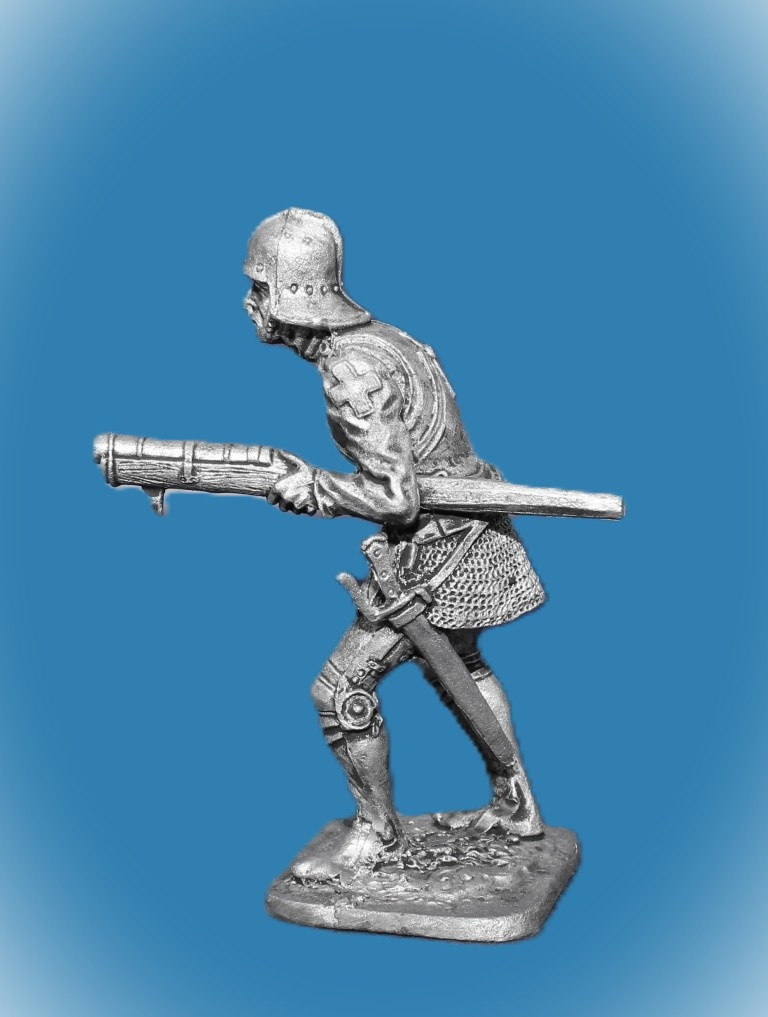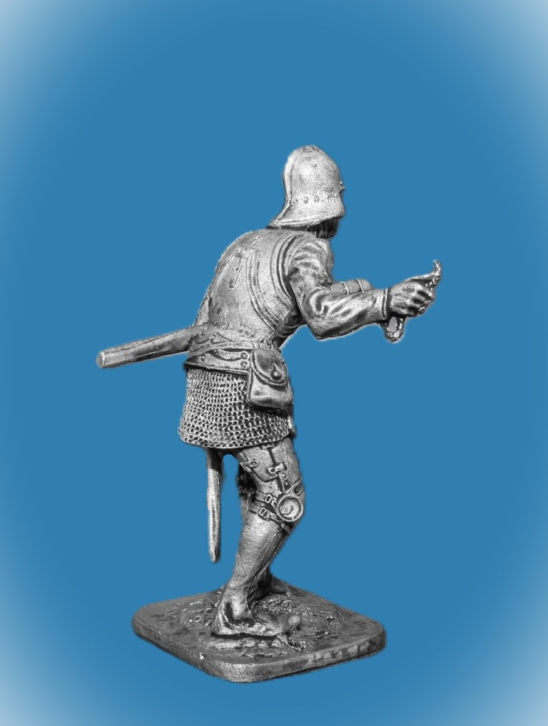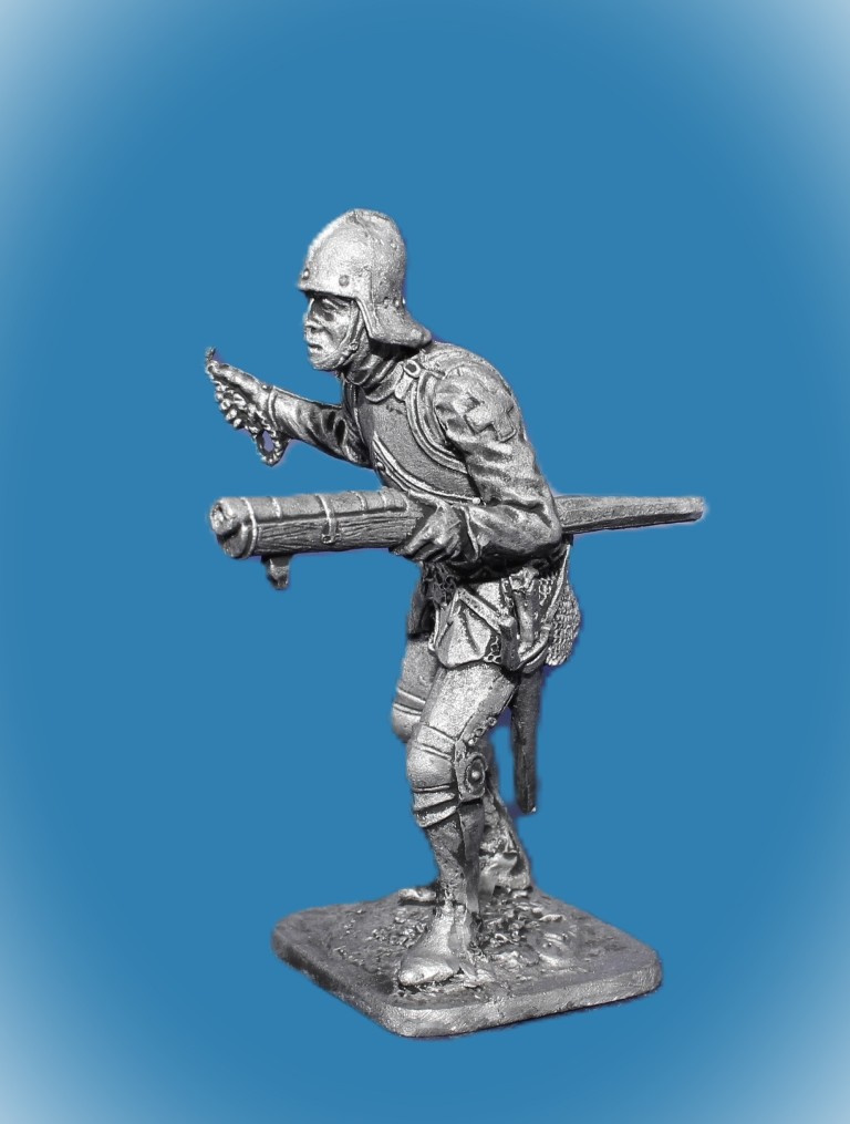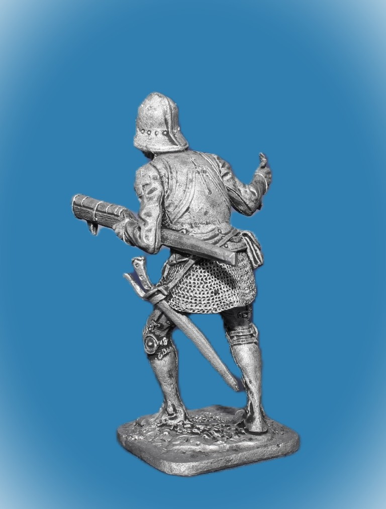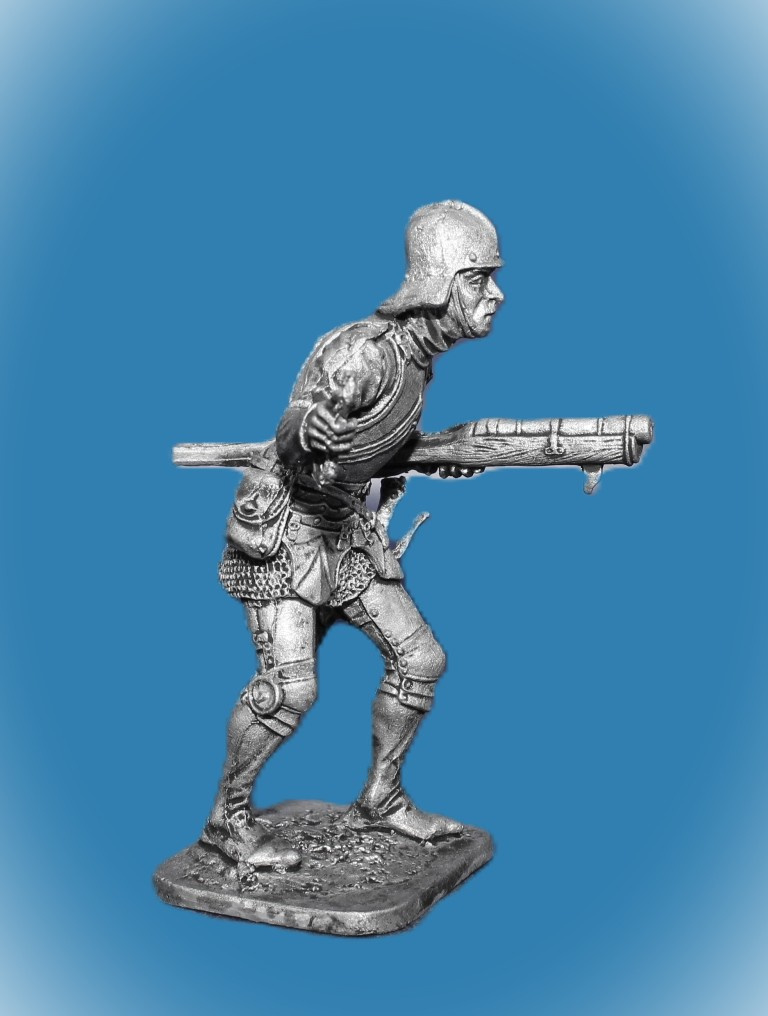 071. Оловянный солдатик Швейцарский стрелок из ручницы, 15 век, 54мм