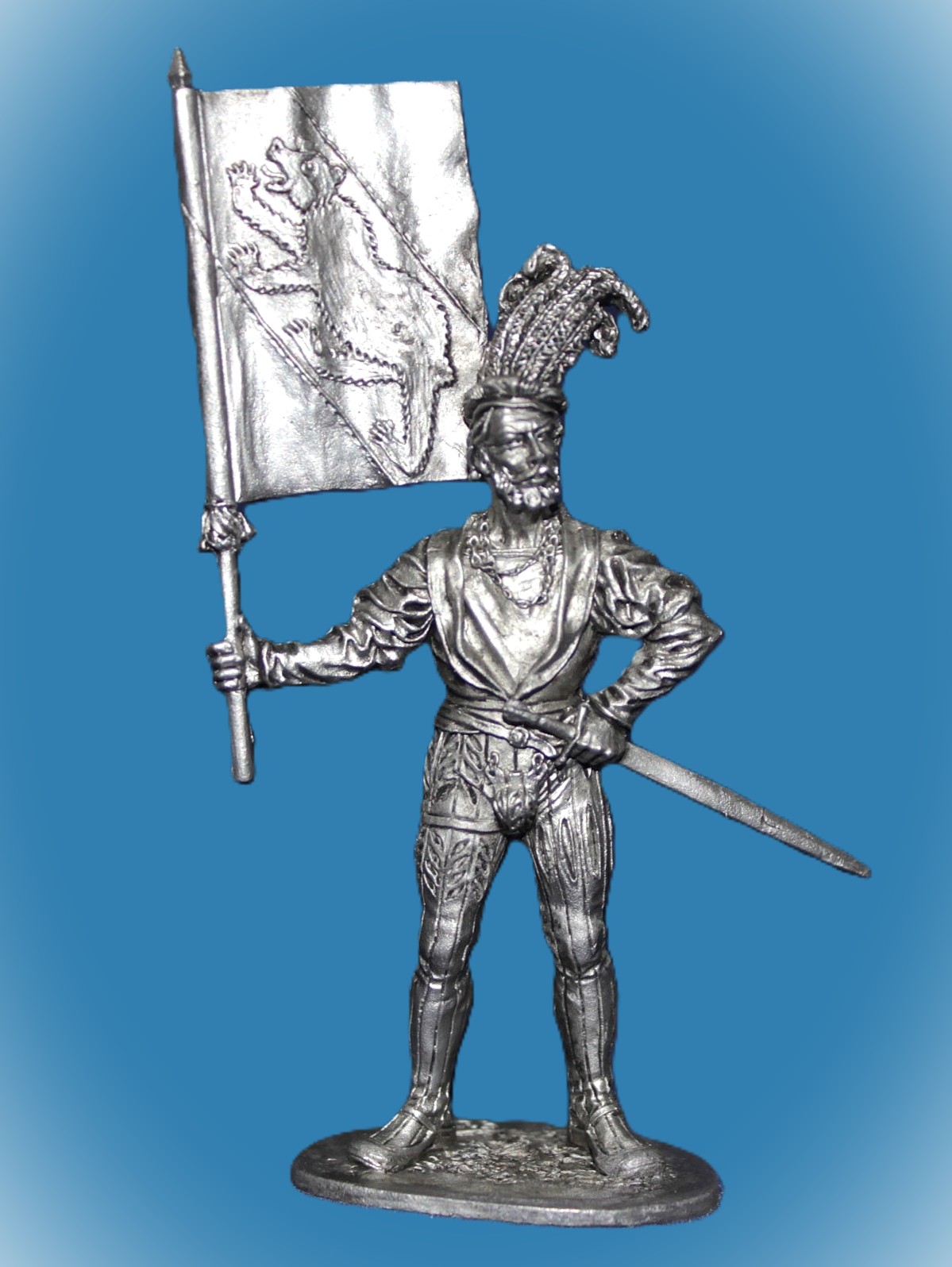 090. Оловянный солдатик Швейцарский знаменосец города Берна, нач. 16 века, 54мм