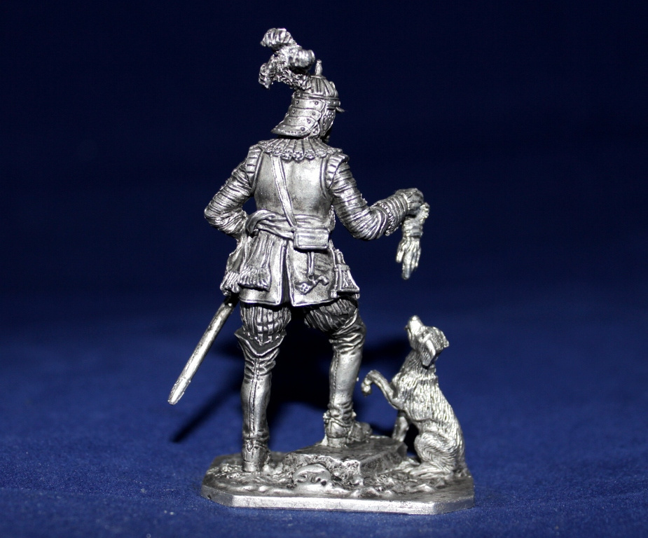127. Оловянный солдатик Германский кавалерист с собакой, 16в, 54мм