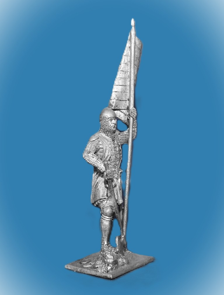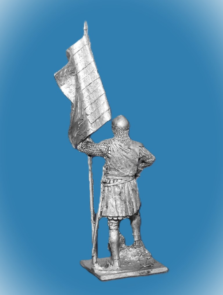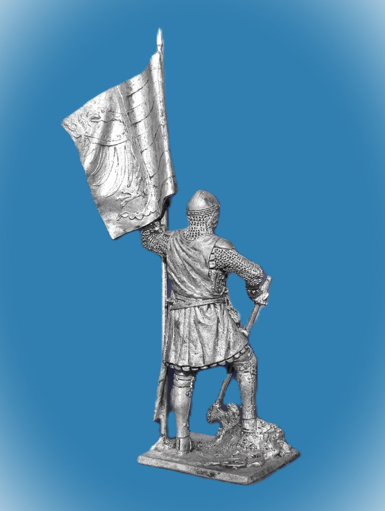 166. Оловянный солдатик Немецкий пехотинец со знаменем, 14 в, 54мм