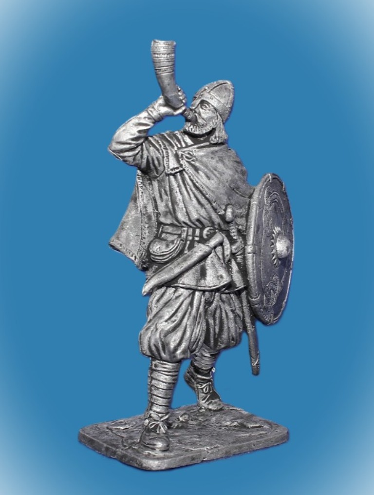 215. Оловянный солдатик Викинг с рогом, 9-10 вв., 54мм