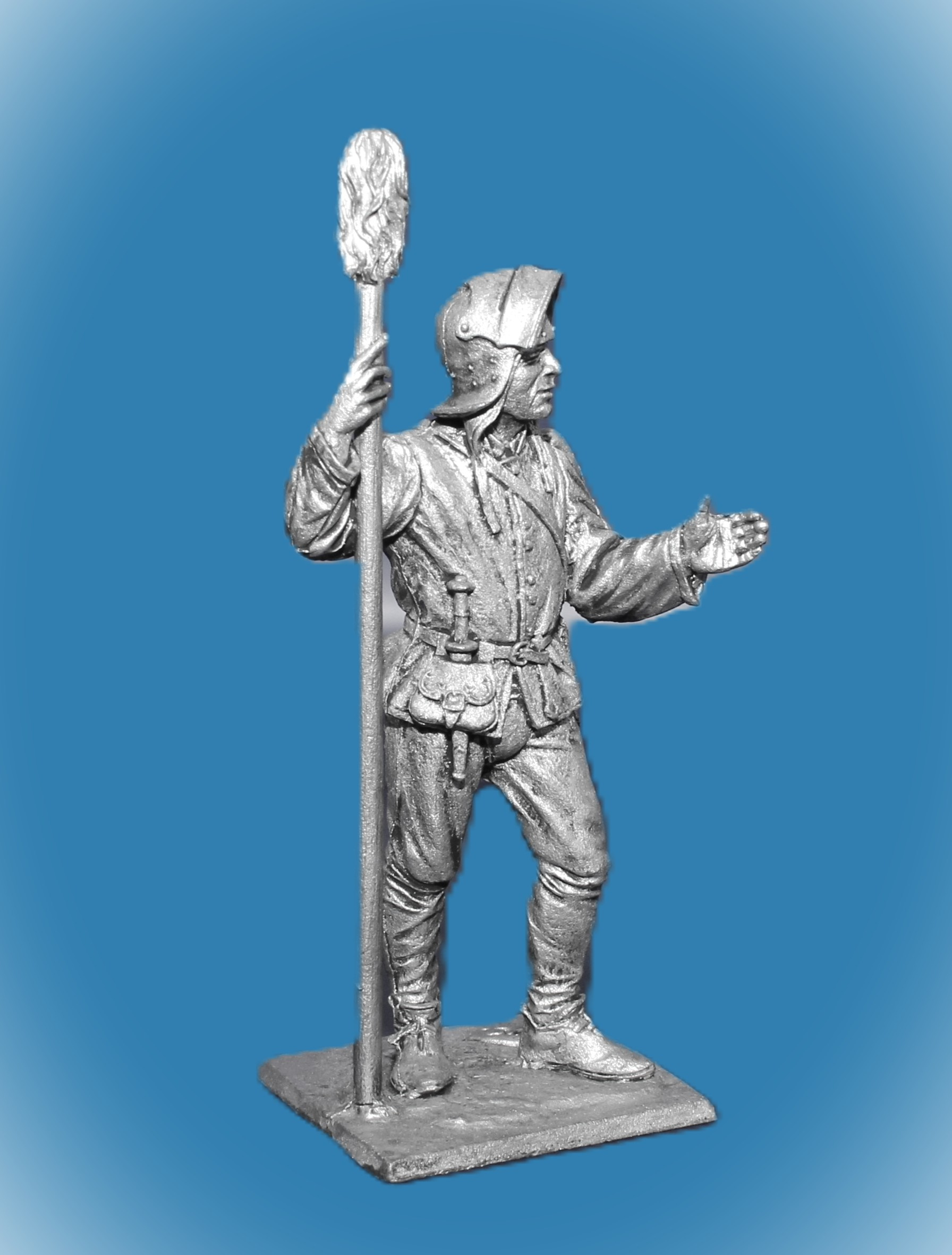 247. Оловянный солдатик Артиллерист с банником. Зап. Европа, 15 в, 54мм