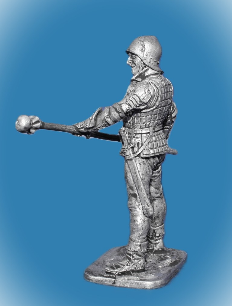 266. Оловянный солдатик Артиллерист с прибойником. Зап. Европа, 15 век, 54 мм
