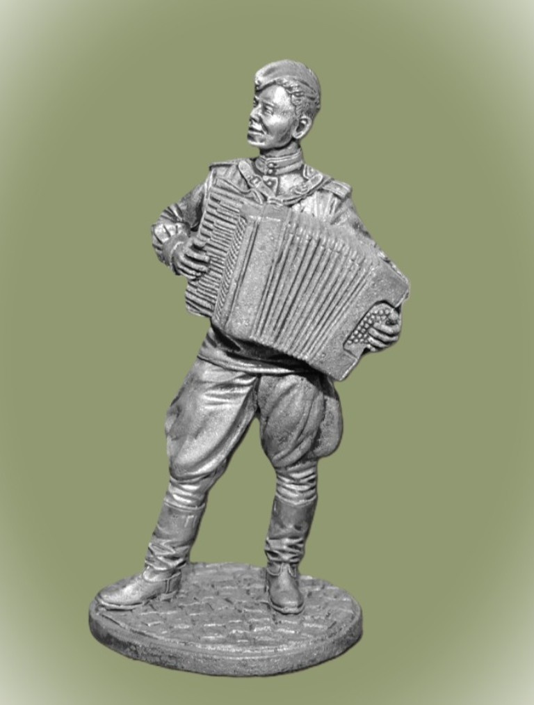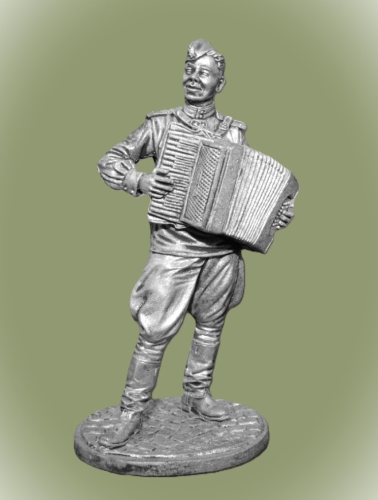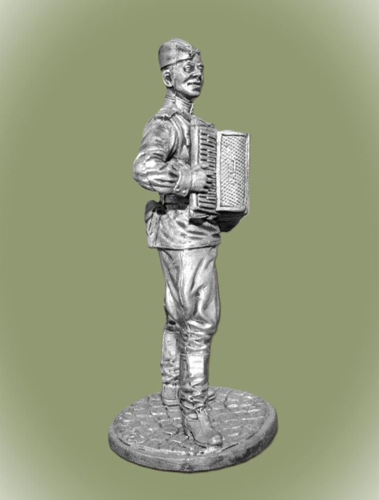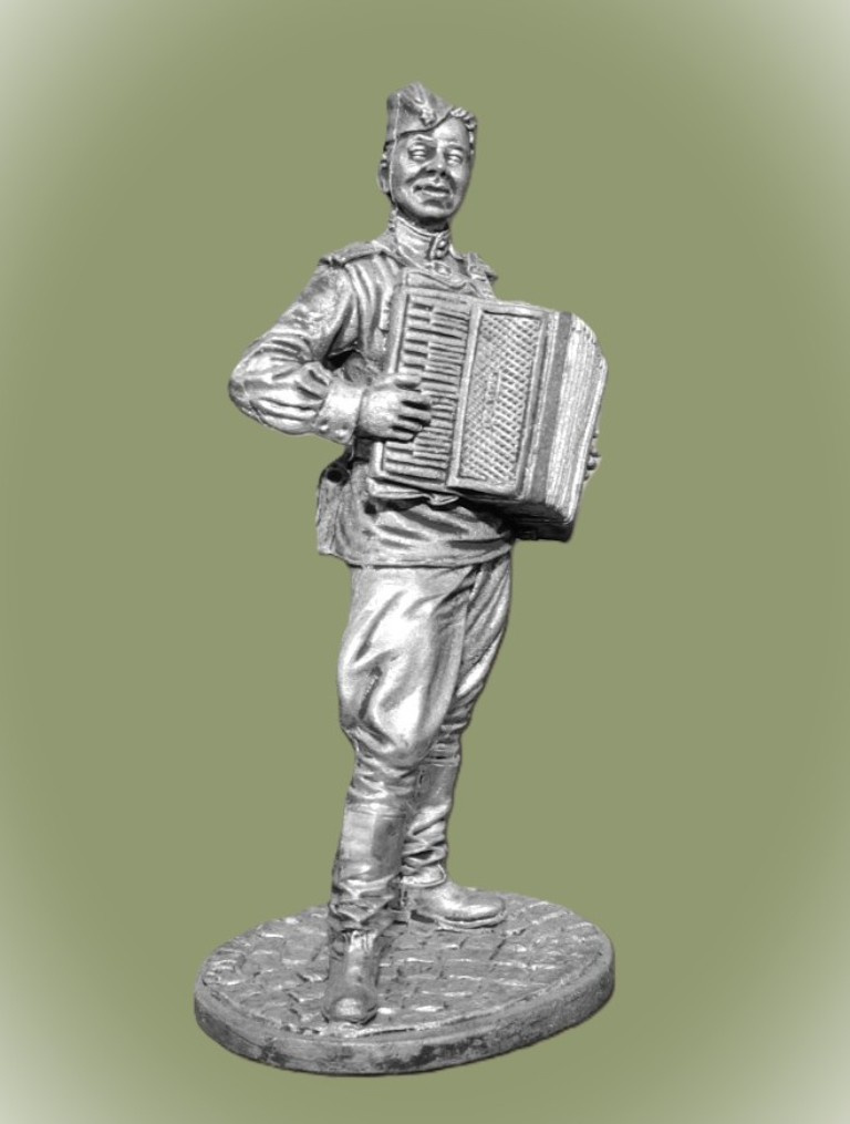 WWII-018 Оловянная миниатюра Лейтенант Красной Армии с аккордеоном. 1944-45 гг. СССР 54 мм.