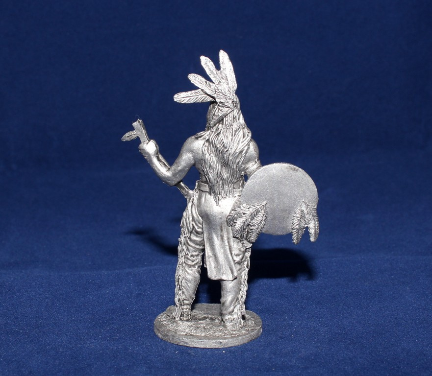 WW-15 Оловянный солдатик Индеец со щитом и тамагавком, 54 мм.