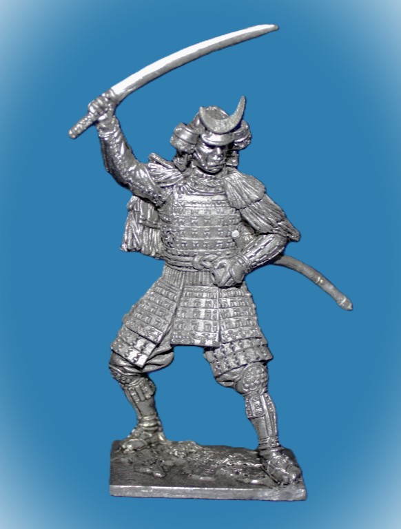 119. Оловянный солдатик Самурай в соломенной накидке, 16 век, 54мм