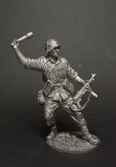 WWII-044 Немецкий солдат с МР40 и гранатой 1943-1945 54 мм.
