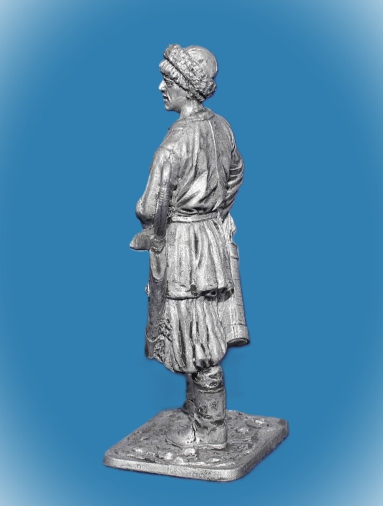 Коллекционная оловянная миниатюра в масштабе 1/32 (54 мм до уровня глаз). Эта детализированная фигурка отлита из сплава на основе олова и создана для ценителей истории, коллекционеров и любителей военно-исторической миниатюры. Каждая мастер-модель создается вручную, элементы одежды, оружие и прочие аксессуары проработаны до мелочей. Каждая складка ткани, каждый элемент вооружения выполнены с высокой точностью, что делает фигурку выразительной. Она станет достойным дополнением любой коллекции солдатиков и основой для художественной росписи.