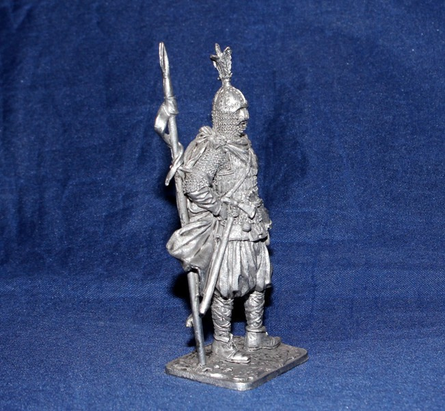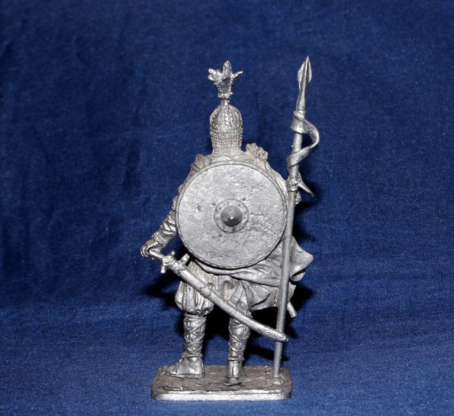 335 Оловянный солдатик Знатный дружинник-конник. Русь, 10 век, 54 мм