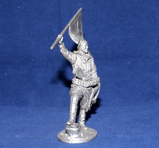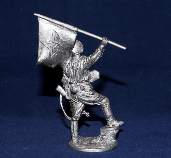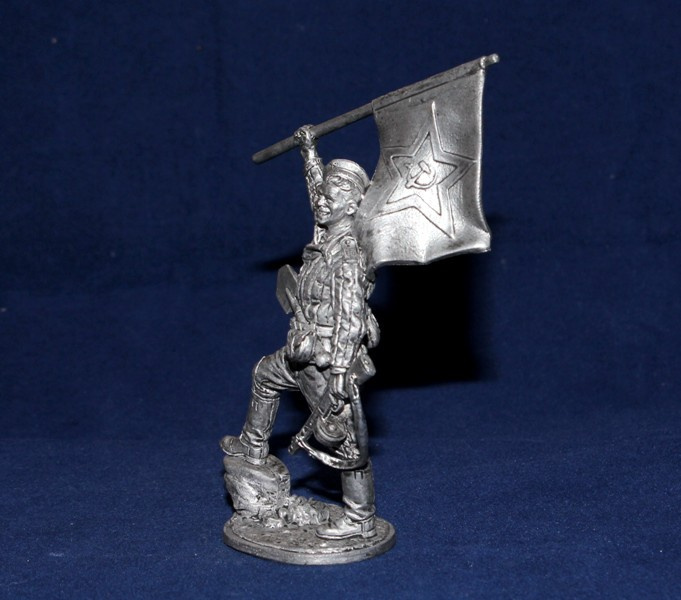 WWII-081 Оловянная фигура Краснофлотец морской пехоты с флагом (гюйсом), 1943-45 гг. СССР, 54мм