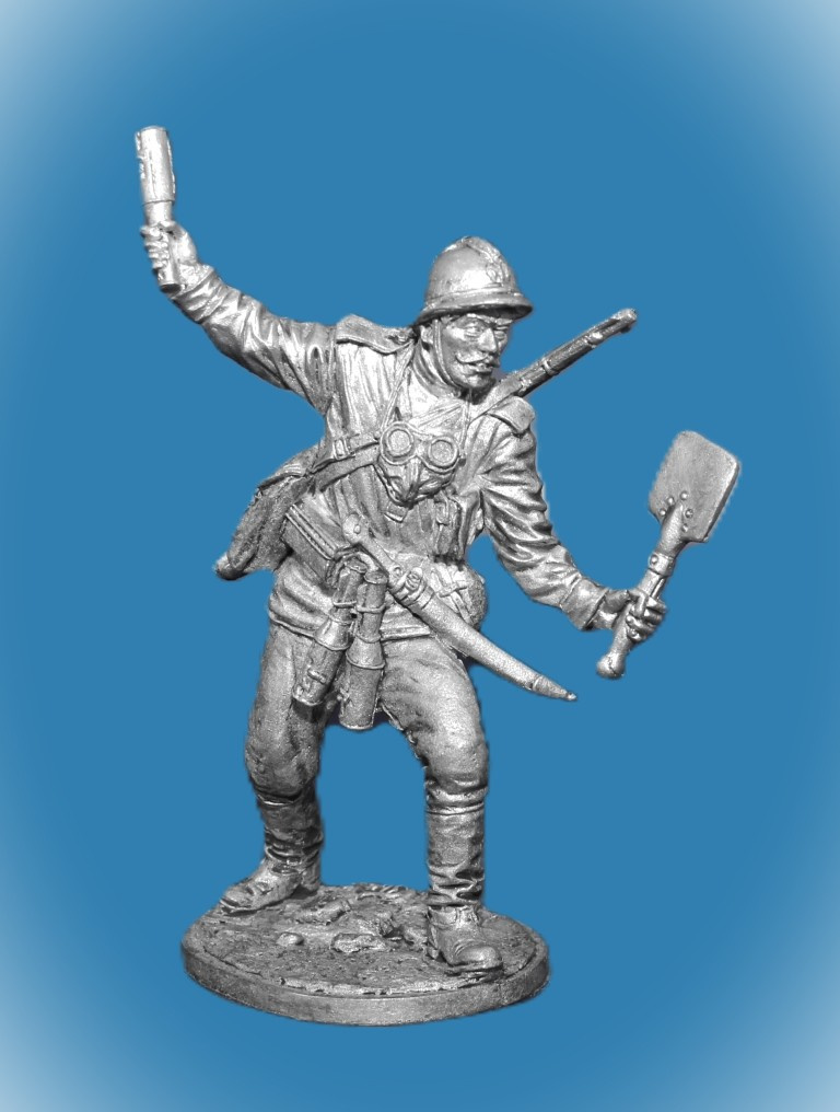 WWI-5 Оловянный солдатик гренадер штурмовой команды. Россия, 1915-17гг.., 54мм