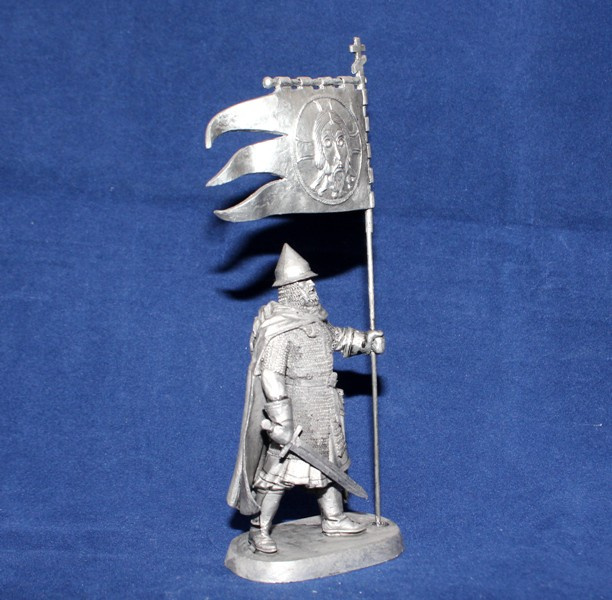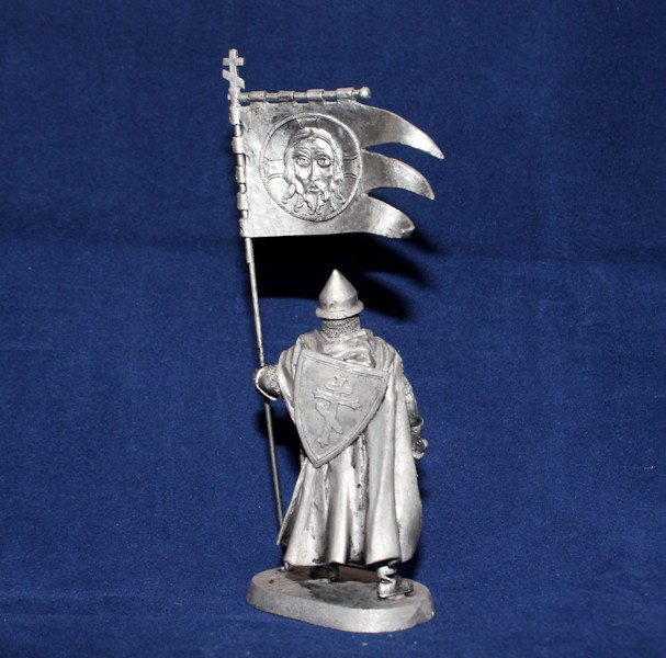 MMW0009 Оловянная миниатюра Новгородский ратник с флагом 10в., 54 мм