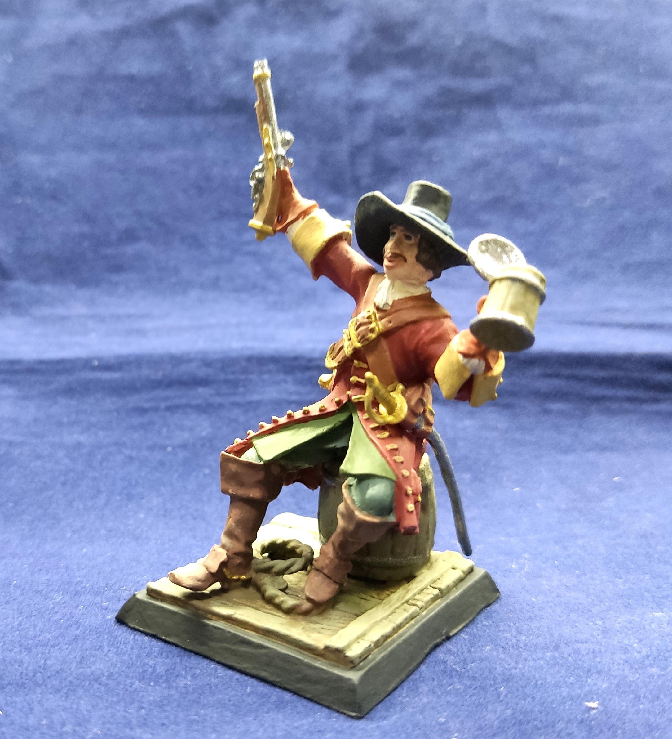 АК01clr Окрашенная оловянная миниатюра Боец армии Кромвеля, Пират на бочке, 54 мм