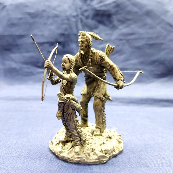 ИНД01 Оловянная миниатюра Индейцы Кроу (папа учит сына стрелять), 54 мм