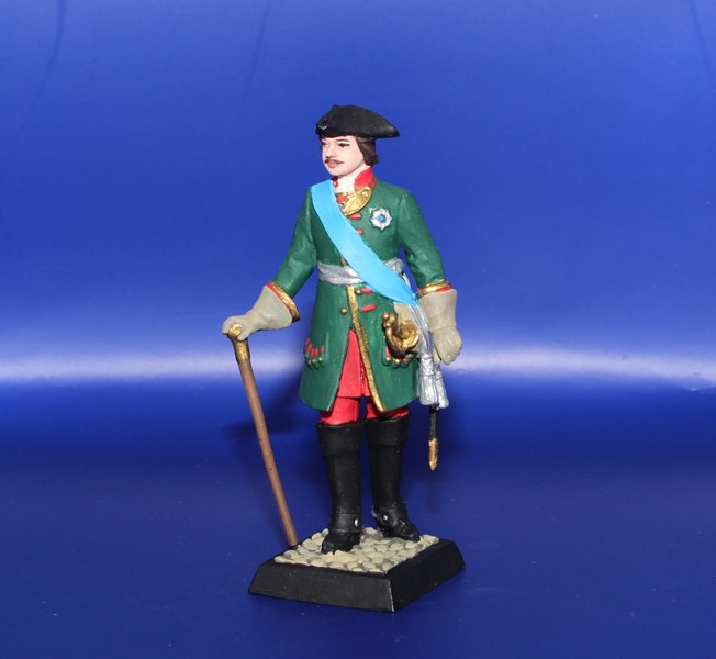 MMW0011clr Окрашенная оловянная миниатюра Император Пётр I, 54 мм