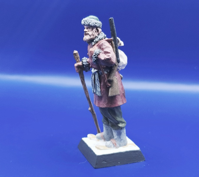 MMW0035clr Окрашенная оловянная миниатюра Кокованя- охотник, 54 мм