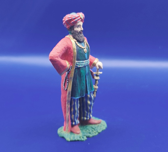 ТС01clr-2 Окрашенная оловянная миниатюра Турецкий султан в зеленом, 54 мм