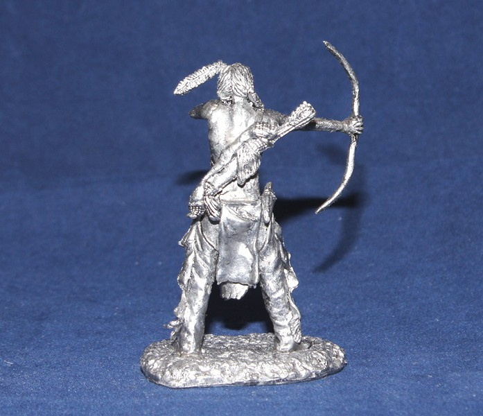 ИНД03 Оловянная миниатюра Индейцы Кроу, воин с луком, 54 мм