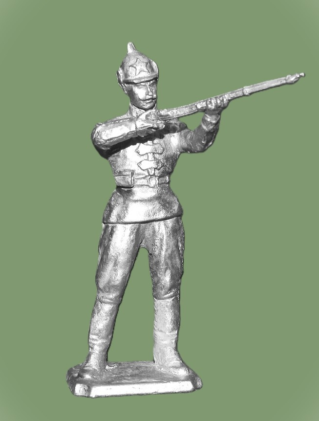 РФ46-3 Оловянная миниатюра Буденовец с винтовкой стреляющий, 54мм