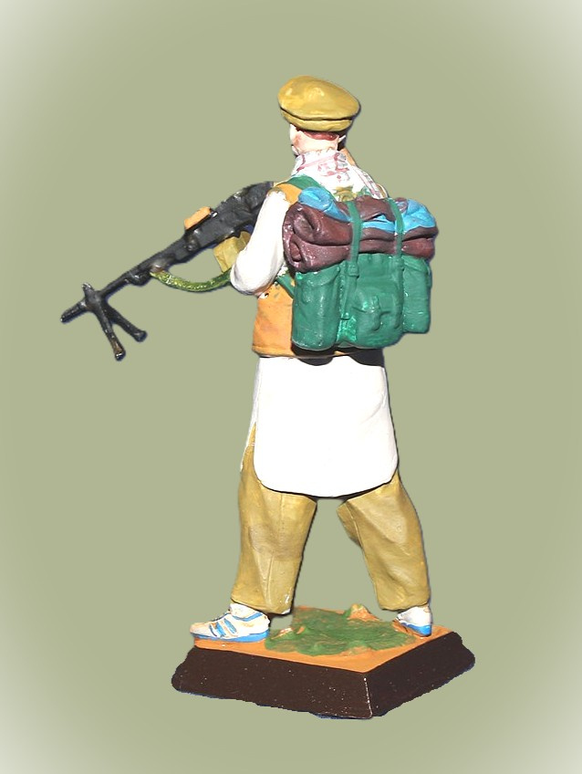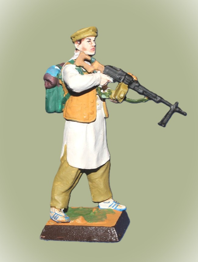 MMW0054clr Окрашенная ловянная миниатюра Боец спецназ ГРУ с пулеметом ( Афган), 54 мм