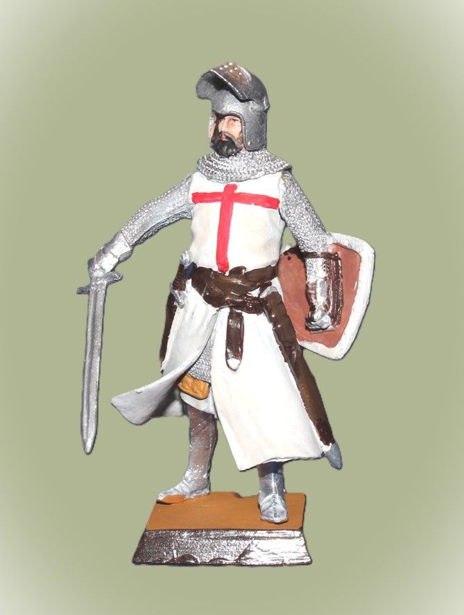 РТ-01clr Окрашенная оловянная миниатюра Рыцарь-тамплиер с открытым забралом, 54 мм