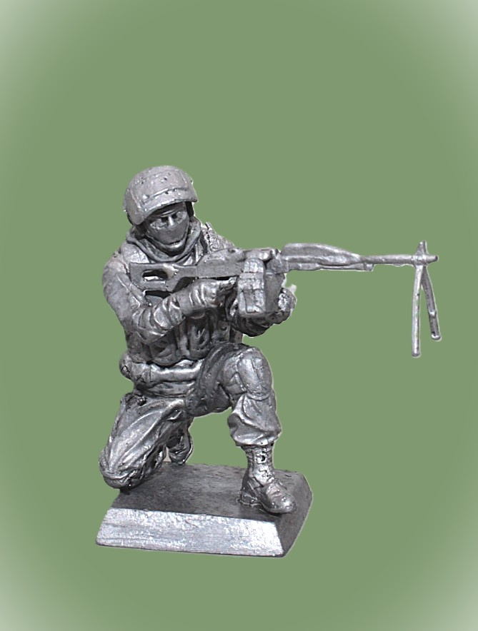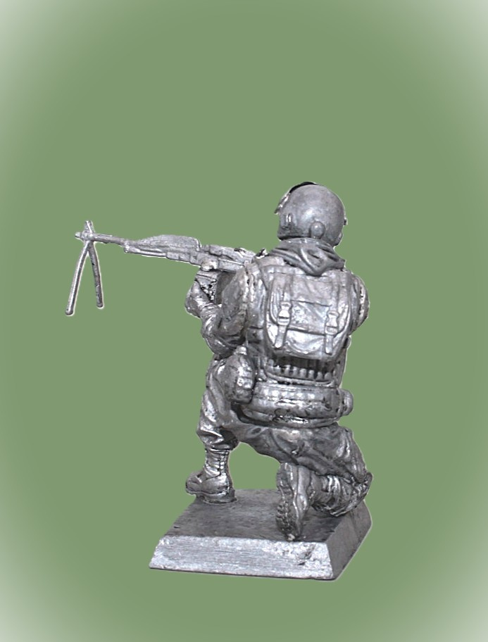 СНРФ14 Оловянная миниатюра Боец спецназа РФ с пулеметом на колене, 54 мм