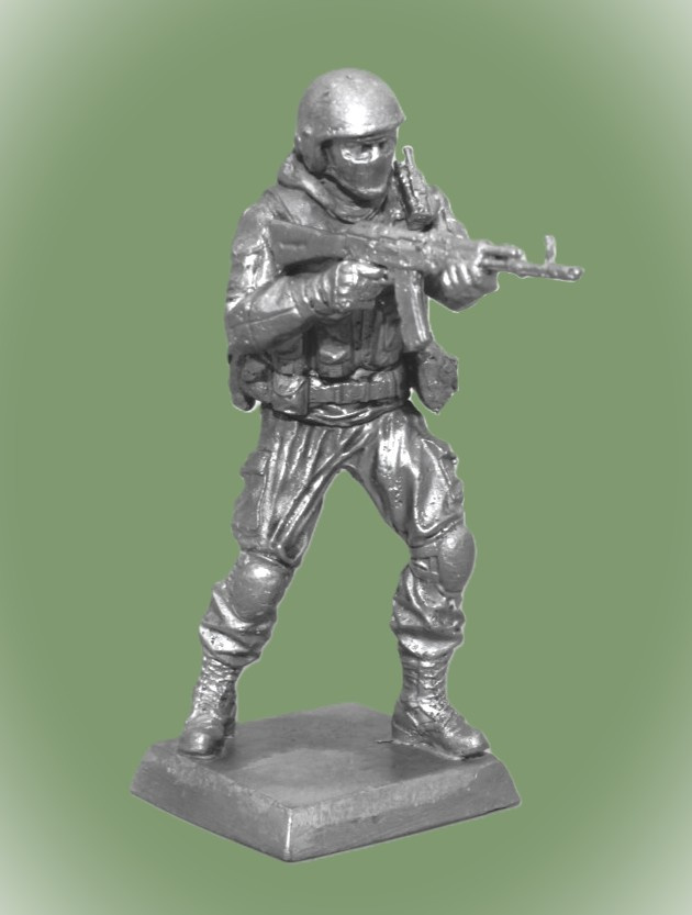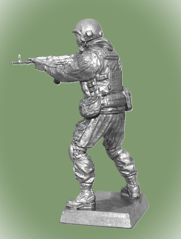 СНРФ15 Оловянная миниатюра Боец спецназа РФ в маске стоит с АКС-47У, 54 мм
