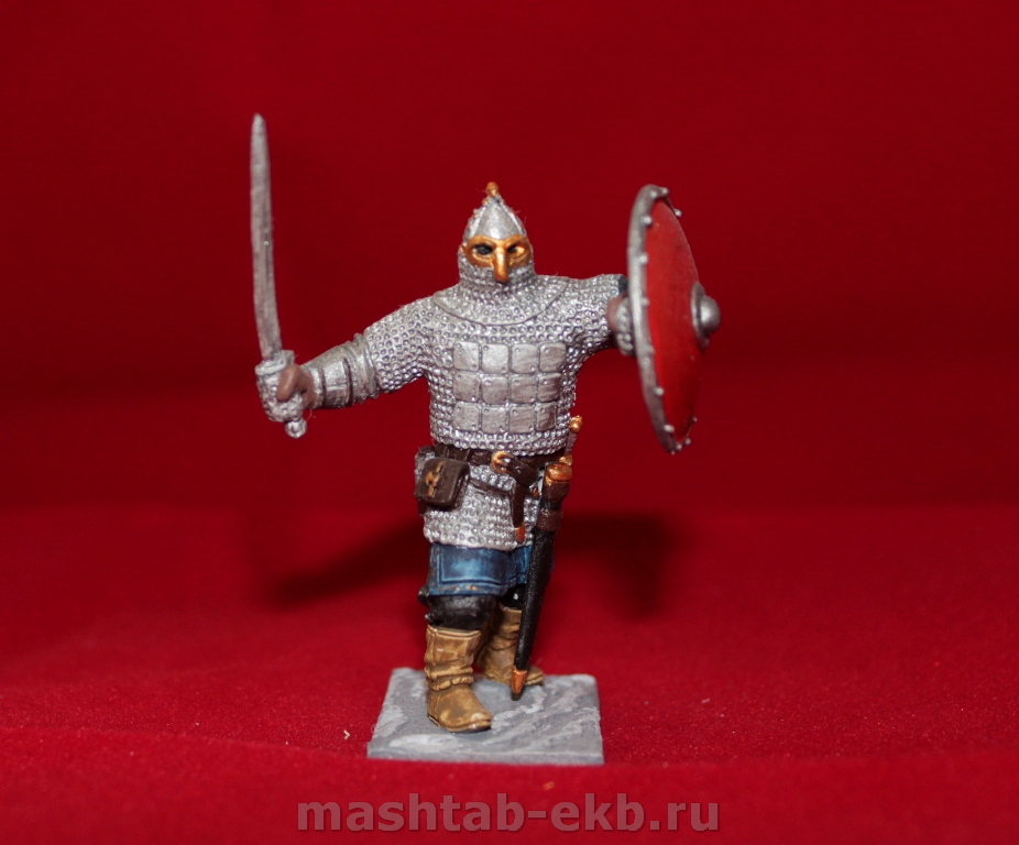 1007 Окрашенная фигура Ополченец посадский тяжеловооруженный 54 мм. метал