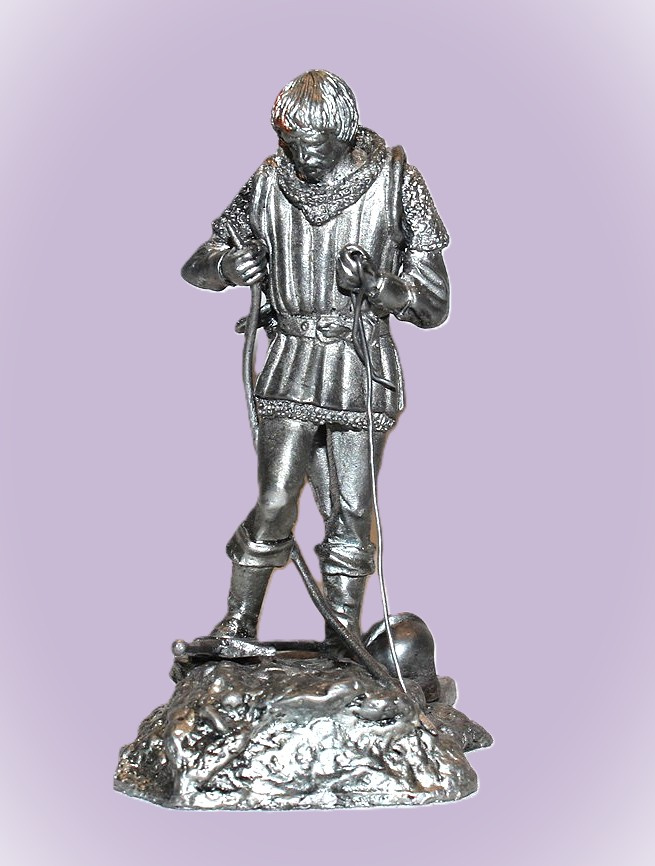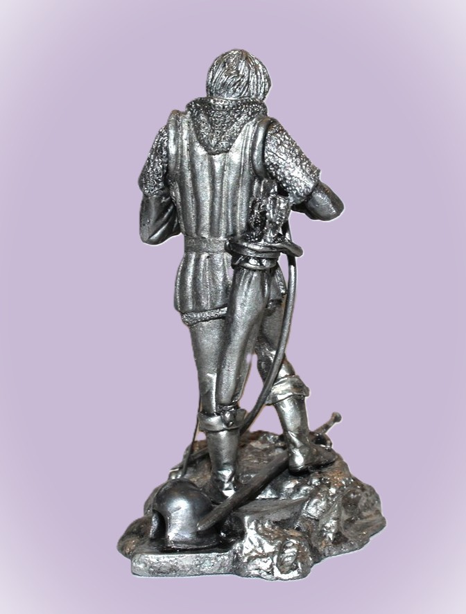 №046 Оловянная миниатюра лучник, натягивающий тетиву, размер 84мм