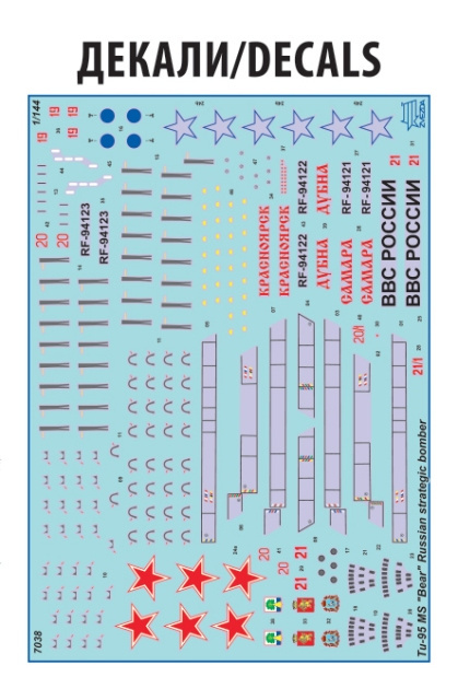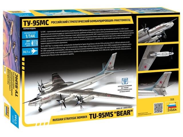 7038 Сборная модель Российский стратегический бомбардировщик-ракетоносец Ту-95МС, 1:144