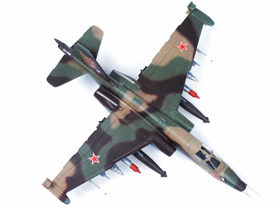 Первый полет самолета, получившего обозначение Су-25, состоялся в феврале 1975 года. На десяти узлах внешней подвески под крыльями Су-25 может нести до 4,4 тонны боевой нагрузки, включающей в себя бомбы, блоки неуправляемых ракет, ракеты класса "воздух- поверхность" с лазерной системой наведения, контейнеры с пушками.
