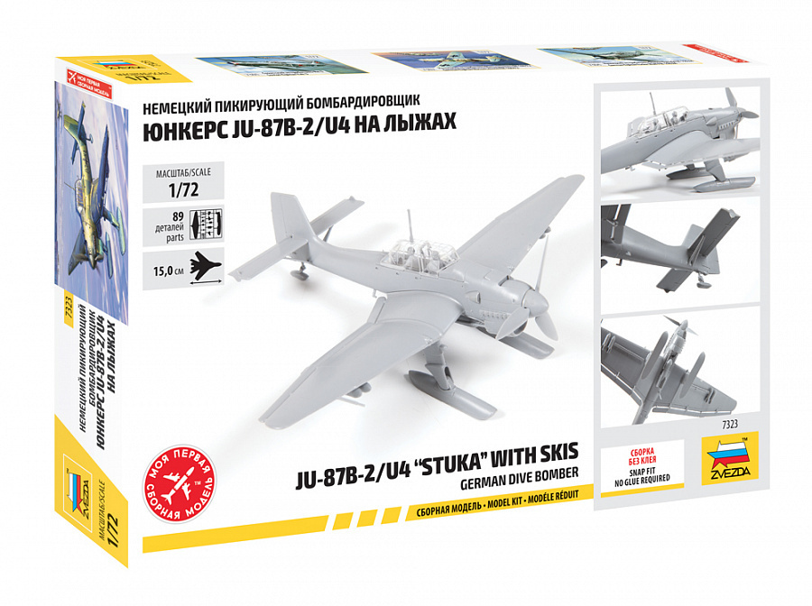 7323 Сборная модель Немецкий пикирующий бомбардировщик Юнкерс Ju-87B2 на лыжах сборка без клея 1/72