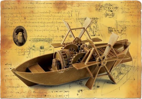 600011 Игрушка корабль Лодка с гребными колесами по проекту Леонардо да Винчи
